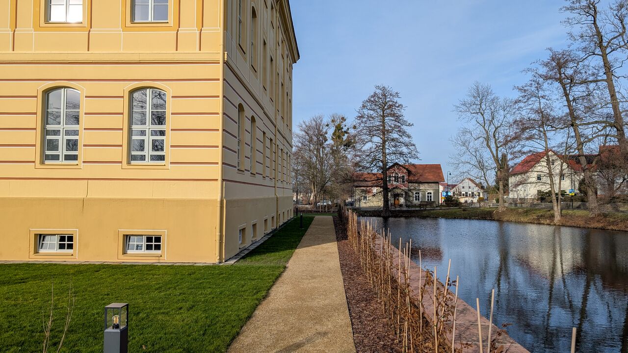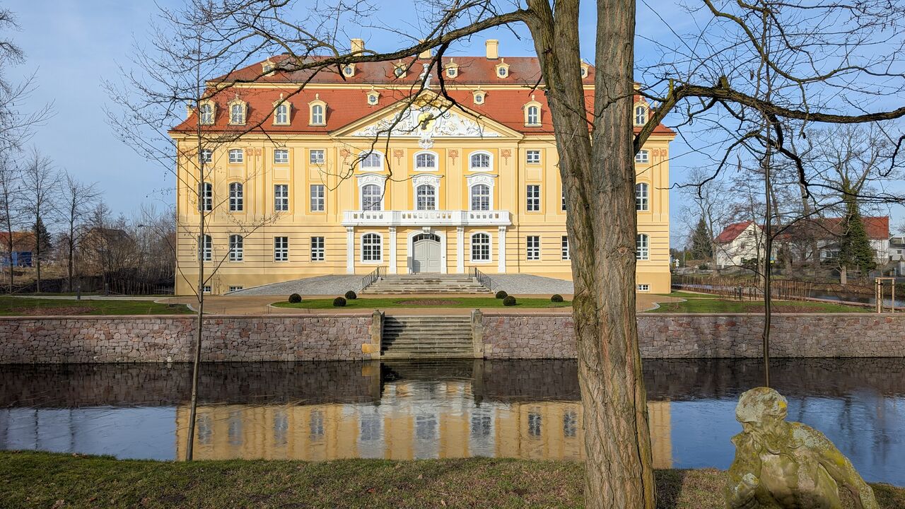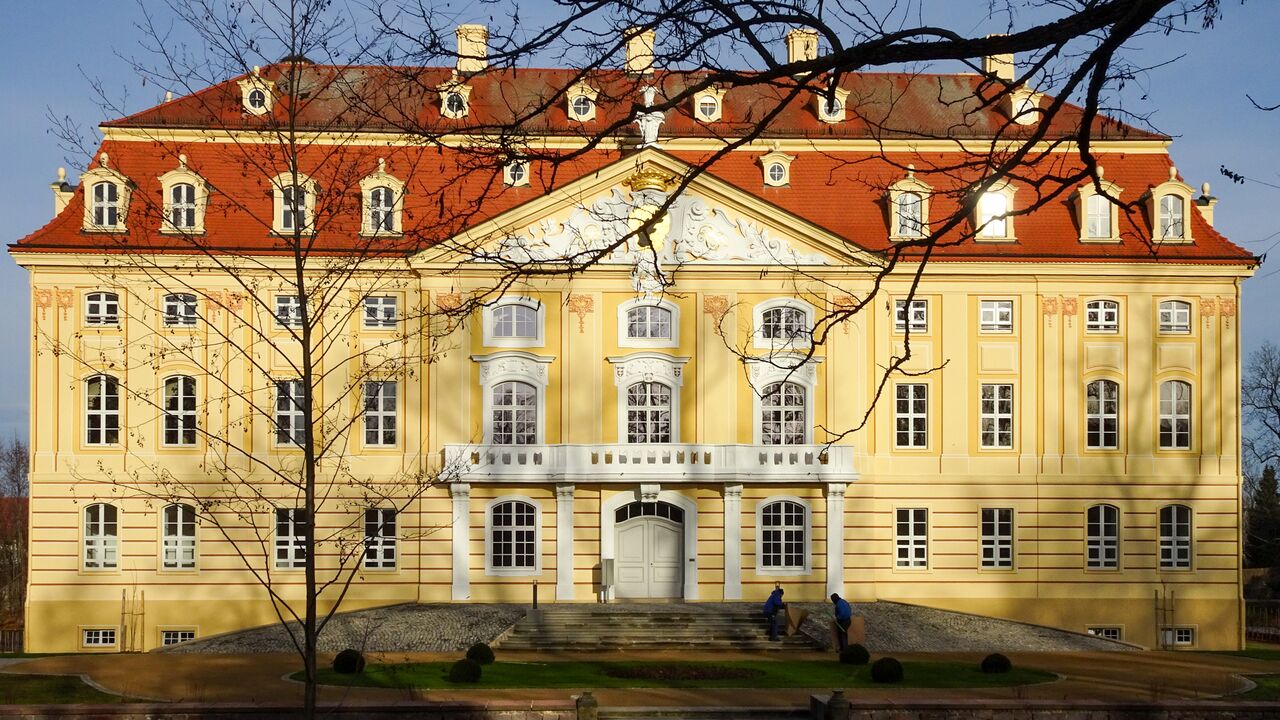 Sanierung, Umbau und Nutzungsänderung des Barockschlosses in Wachau zu 10 Wohnungen und 3 Büros in den repräsentativen Räumen im 1. Obergeschoss. Entstehungszeit des Schlosses zwischen 1730 bis ca. 1754 als Eichenpfahlgründung auf einer Schlossinsel umgeben von einem Wassergraben.
