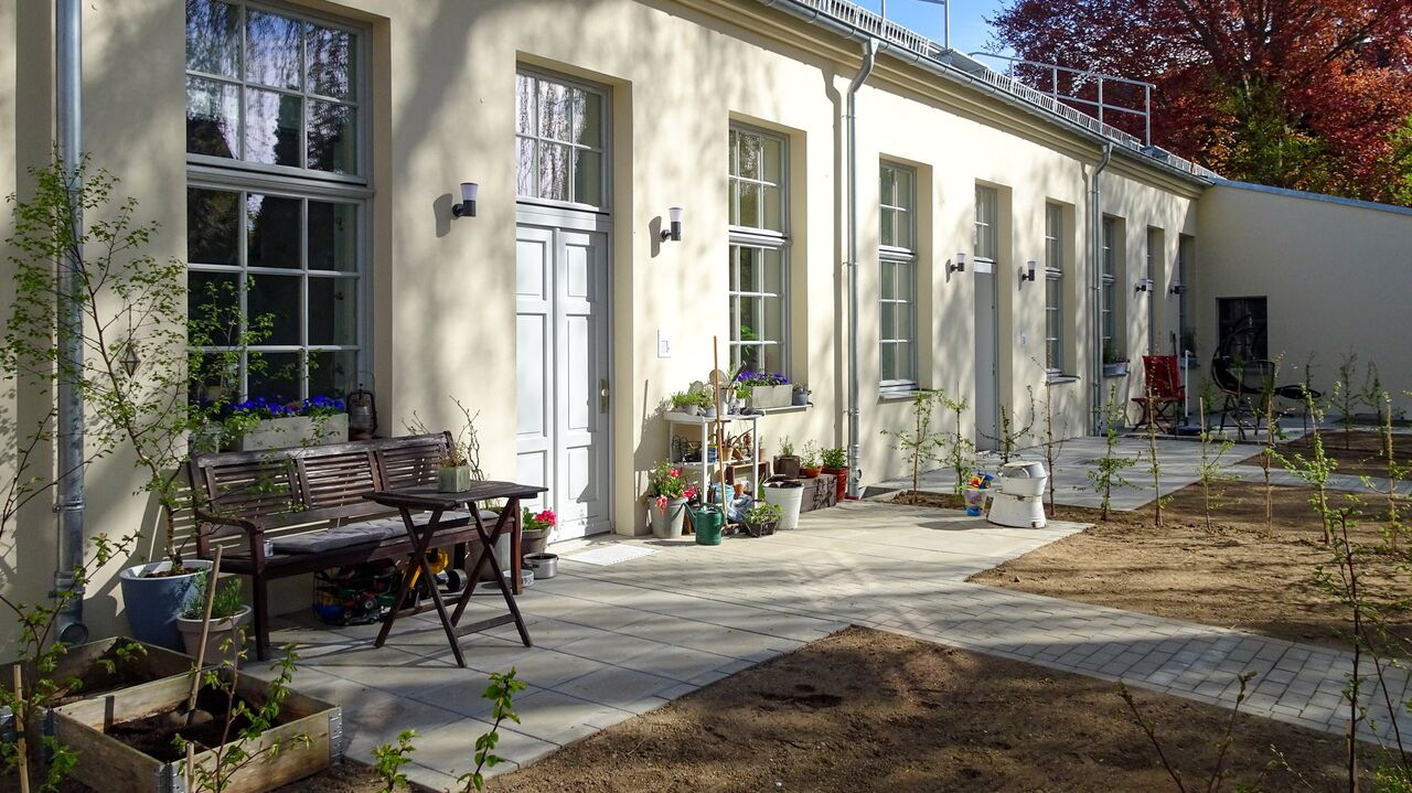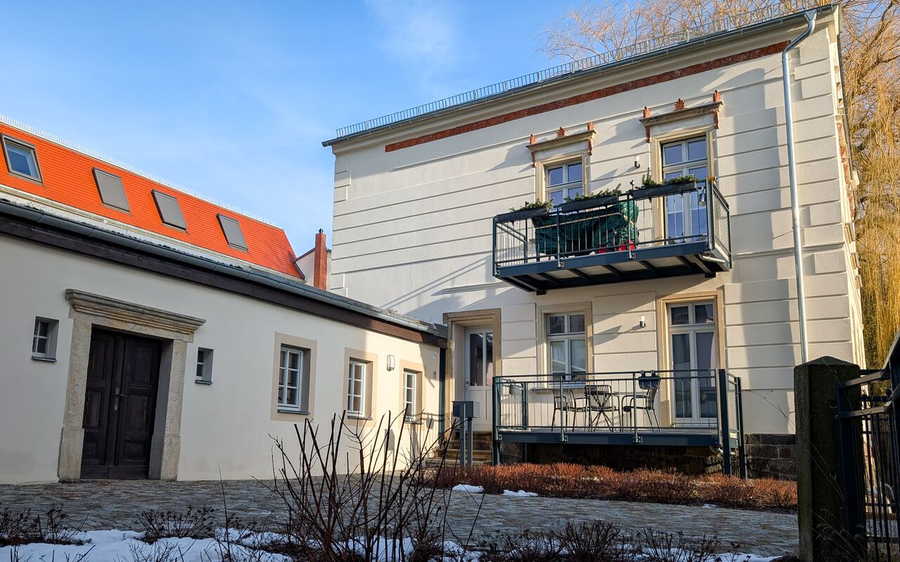 Sanierung, Umbau und Nutzungsänderung eines unter Denkmalschutz stehenden ehemaligen Weberei-Fabrikareals mit Villa (1882), Wirtschaftsgebäude (1914), mehrgeschossigem Lagerhaus (1907) mit angrenzender Montagehalle (1899), Pferdestall und Resten eines historischen Umgebindehauses mit Sandsteinportal (1843) zu 23 Wohnungen