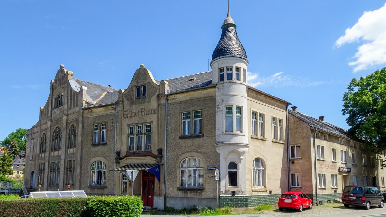 Sanierung, Umbau und Nutzungsänderung des Grünen Baumes - einer ehemaligen Gaststätte mit einem Jugendstilsaal - zu 16 Wohnungen und Tagespflege. Das Gesamtareal steht unter Denkmalschutz. Der Gebäudekomplex wurde errichtet, erweitert bzw. umgebaut in den Jahren 1871, 1874, 1898, 1905 (großer Um- und Anbau mit Jugendstilsaal) und 1939.